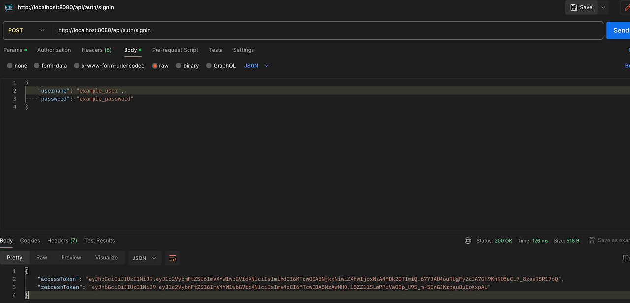 TokenResponse에는 accessToken과 refreshToken을 담았다. refreshToken을 매번 새로 발급하여 보내주면 보안이 더 좋아질 것이다. 하지만 요청마다 refreshToken도 발급을 새로 해야 하기 때문에 서버에 조금 더 부하가 생길 수는 있을 것이다. 이 부분은 추후 /refresh의 경로를 만들어서 accessToken이 만료된 것을 확인한 이후 refreshToken을 요청할 수 있도록 분리하면 좋을 것 같다.