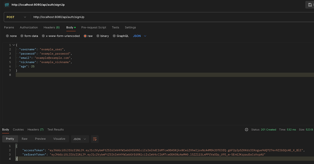 public TokenResponse signUp(SignUpRequest request) {