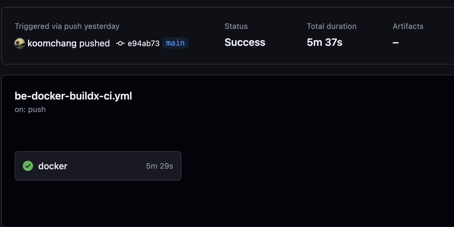 - platforms 명령어를 통해 ARM / AMD 플랫폼 모두 빌드할 수 있다. 둘 다 넣으면 두 가지 모두 빌드가 된다. 다만, 우리는 ARM 기반 ec2 한대만 가용하기로 했기 때문에 굳이 AMD 플랫폼을 추가하지는 않았다.