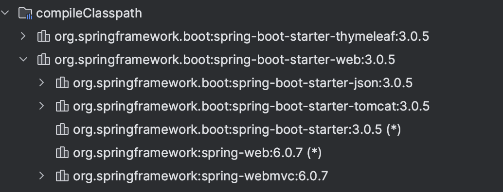 Dependency의 경우 Spring Web을 추가하면 Spring Web을 사용하기 위한 다른 dependency 들도 자동으로 추가를 해준다. 이 덕분에 하나하나 우리가 설정하지 않아도 된다.