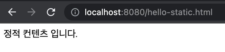정적콘텐츠는 서버에서 직접 클라이언트에 파일 채로 보내주는 것인데, 여기서는 html 을 하나 만들고 controller도 없이 접근하는 것을 보여준다.